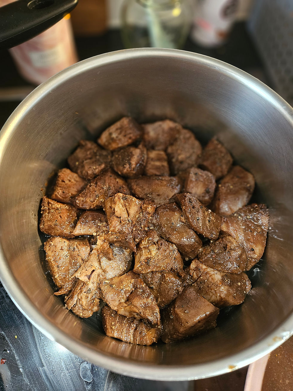 Cut the tuna pieces into small squares or rectangles. Then dip the pieces into the Ambul Thiyal batter and cover it very well with the Ambul Thiyal paste. (I put the fish and tamarind paste mix into a plastic bowl and kept it overnight in the fridge.